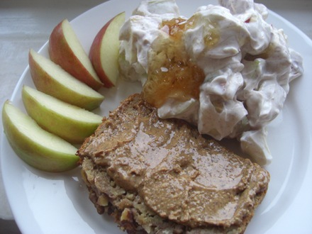 I also had three sliced plums with a tablespoon of greek yoghurt and a little cinnamon.