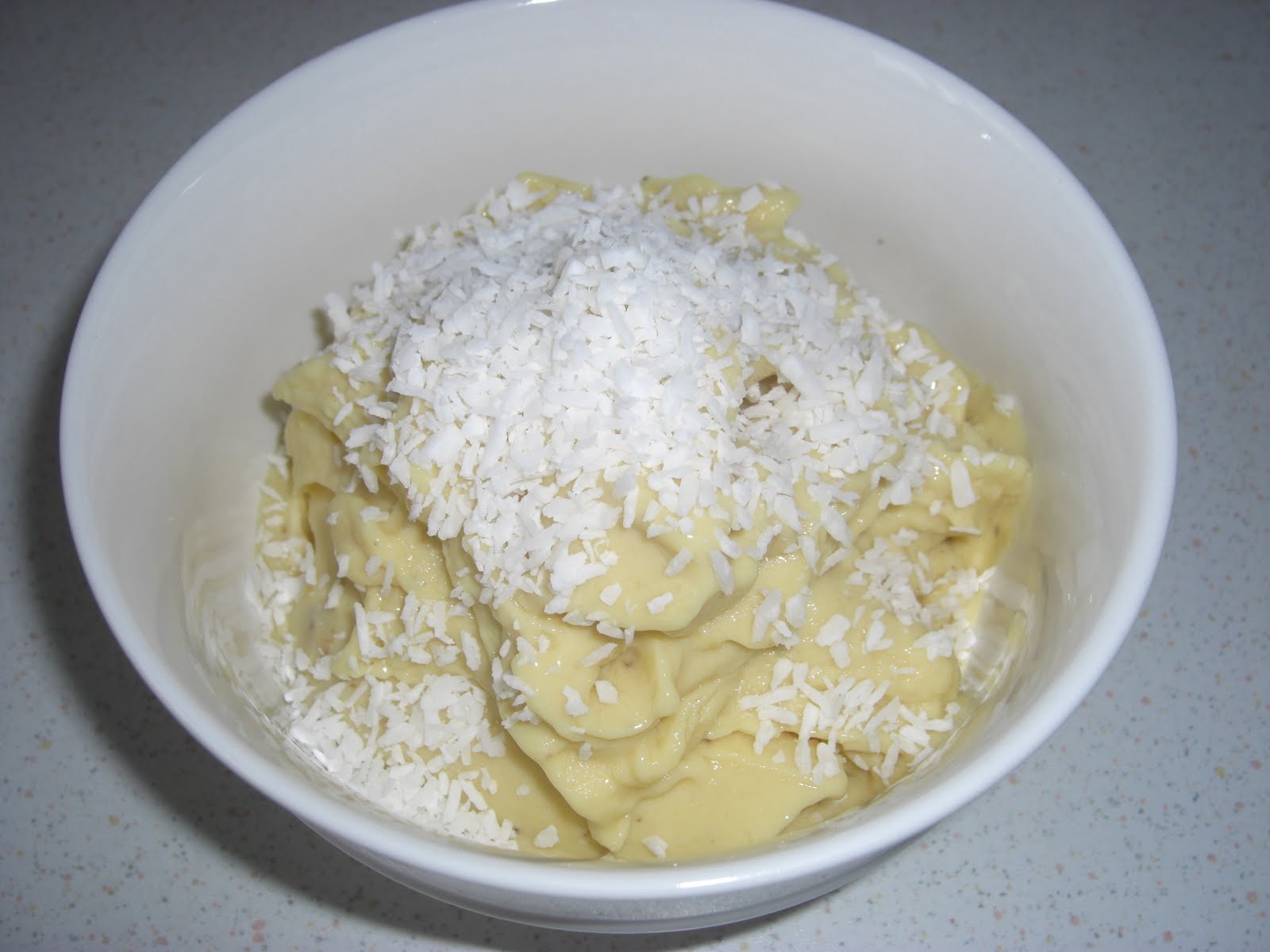 Desert was this little bowl of tropical flavoured heaven - Mango, Banana, Coconut Softserve (frozen mango, frozen banana, kara coconut milk blended and topped with desicated coconut)