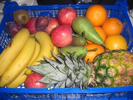 Today I also got my fruit and vegetable boxes from the food co op. This week I went for the £5 fruit box and the £5 veg box: